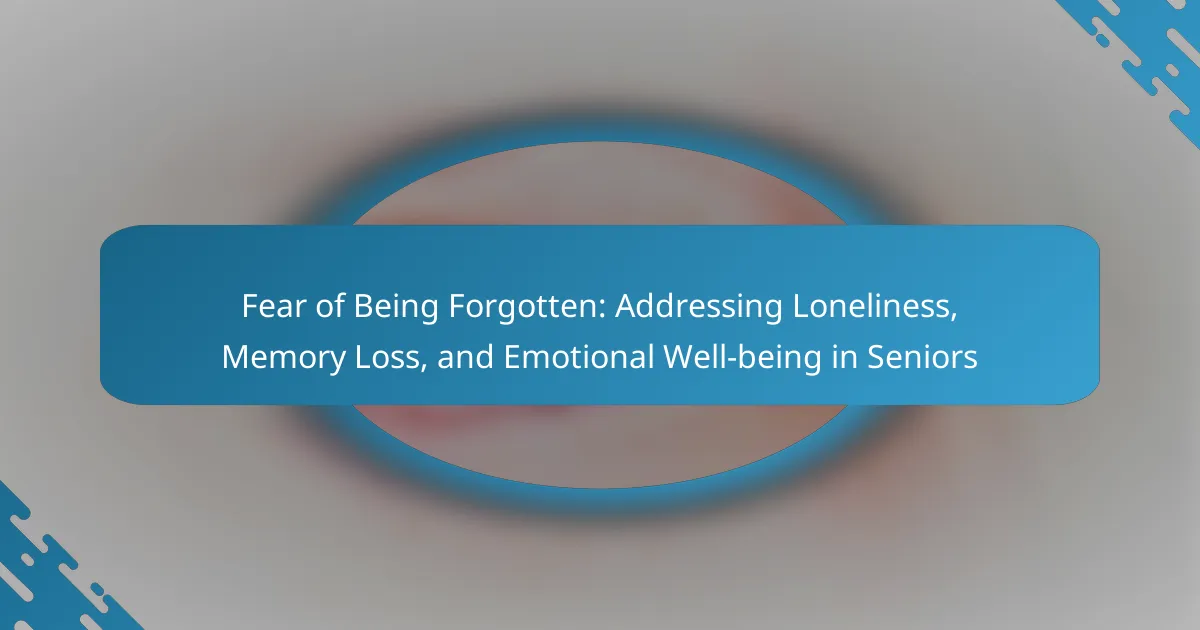 Fear of Being Forgotten: Addressing Loneliness, Memory Loss, and Emotional Well-being in Seniors